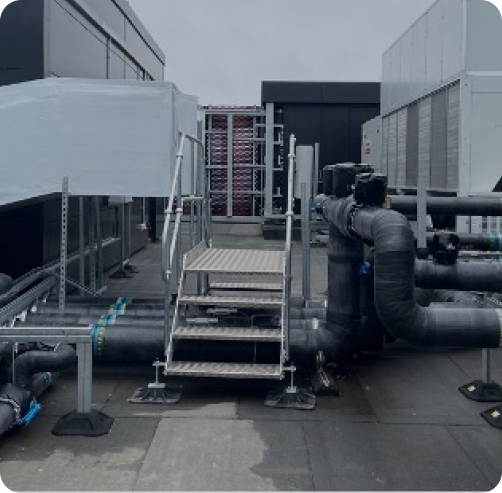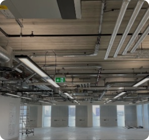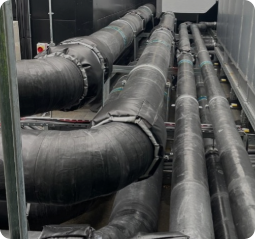 Our team undertook the comprehensive insulation of both internal and external pipework and ductwork systems. This included the installation of over 13,000 linear meters of mineral wool pipe sections and 2,000 square meters of duct wrap and slab, ensuring optimal thermal performance and energy efficiency throughout the building.
